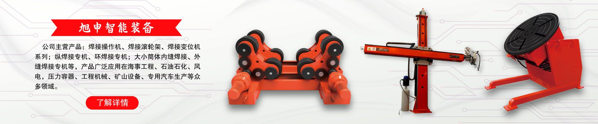 本公司產(chǎn)品的主要特點(diǎn)是標(biāo)準(zhǔn)化、專業(yè)化、批量化,借鑒國內(nèi)外設(shè)計(jì)、制造經(jīng)驗(yàn),結(jié)合國內(nèi)外用戶的使用習(xí)慣,專業(yè)從事自動(dòng)化焊接設(shè)備、H型鋼生產(chǎn)線及數(shù)控切割設(shè)備等焊接裝備的研發(fā)設(shè)計(jì)。